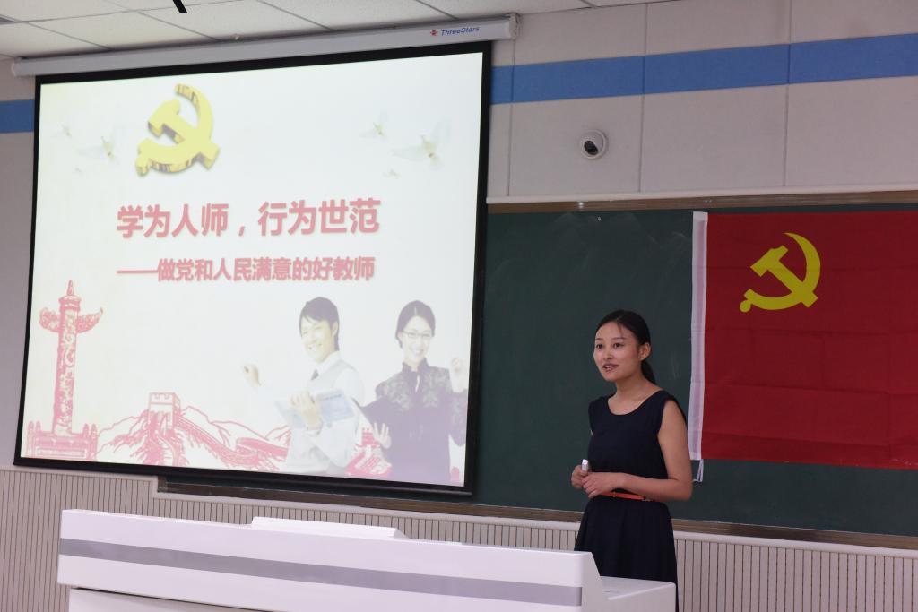 甘琴老師的授課以“學為人師,行為世范——做黨和人民滿意的好教師”為主題,呼吁全體黨員教師努力成為有理想信念、有道德情操、有扎實學識、有仁愛之心的好老師,做中華民族“夢之隊”的筑夢人;施芳芳老師的授課以入黨宣誓的視頻導入,介紹了不同時期入黨誓詞的發展歷史,點明入黨誓詞不僅僅只是八十個字,不僅僅是一道程序,而是對黨和人民的諾言和承諾,是黨規黨紀;楊晨老師的“燃燈之路”,將教師喻為照耀學生前進道路的“燃燈者”,通過制燈篇、擺燈篇、燃燈篇三個部分,一步步闡述當代青年教師如何成為一名合格的“燃燈者”,不負教師之名……