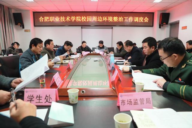 為加強領導,強力推進此項活動,2017年元月12日下午,領導組成員單位負責人在我院行政樓四樓會議室召開合肥職業技術學院校園周邊環境整治工作調度會。領導組組長李先強在講話中強調,合肥職業技術學院校園周邊環境差,合職院前面的“紅棚子”存在多年,對巢湖市創建國家文明城市,對合巢經開區創建國家度假區,對學院形象都有影響,必須進行整治。半湯街道負責人宣讀了《合肥職業技術學院周邊環境綜合整治方案》,確定了整治目標:一是在2017年春節前,取締合肥職業技術學院大門前違規經營場所,對公共用地進行綠化美化;二是成立合肥職業技術學院周邊環境綜合整治領導組。合巢經開區黨工委委員、管委會副主任李先強任組長,合肥職業技術學院黨委副書記胡其云,區黨工委委員、政法委書記黃治斌分別任副組長,區公安分局、消防大隊、建發局、市場監管局、社會事務局、安監局、城管局、半湯街道以及我院為領導組成員單位;三是制定工作具體步驟。