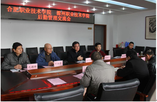 2月29日上午滁州職業技術學院黨委委員、副院長程一斌一行來我院考察交流后勤工作。學院黨委委員、副院長孫興林,總務處長祝建平等熱情接待了考察組一行。